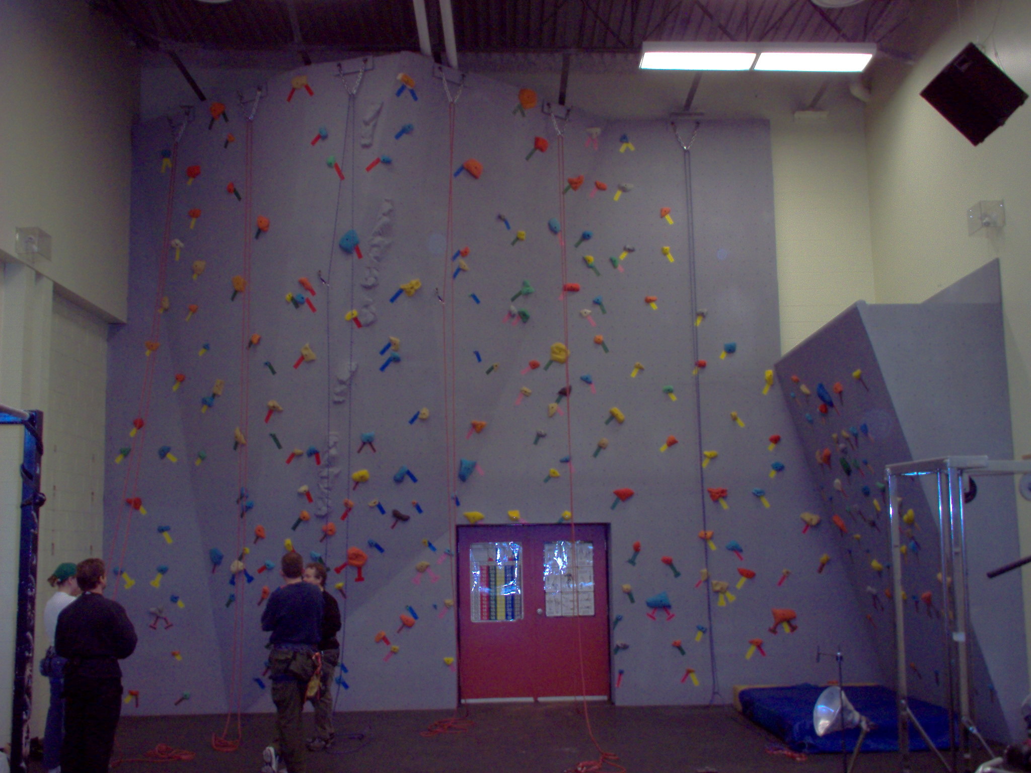 This is the largest wall in an elementary school facility in Canada. It includes top-roping and a